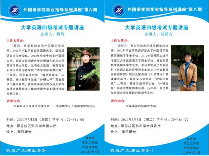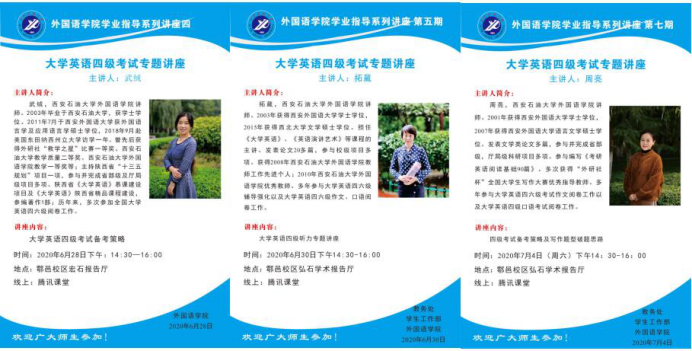 为了让我员工全面了解大学英语四级考试,提升大学英语四级通过率在教务处和员工工作部的支持下,威廉希尔williamhill中文6月29日至7月7日分别举办五场大学英语四级讲座。此次讲座面向全校员工以线上和线下两种方式进行,线下主会场设在鄠邑校区弘石学术报告厅,分会场设在各四级强化辅导班教室,线上使用腾讯课堂直播,截至目前为止公司共有5342名同学通过线上线下方式参加了此次系列讲座