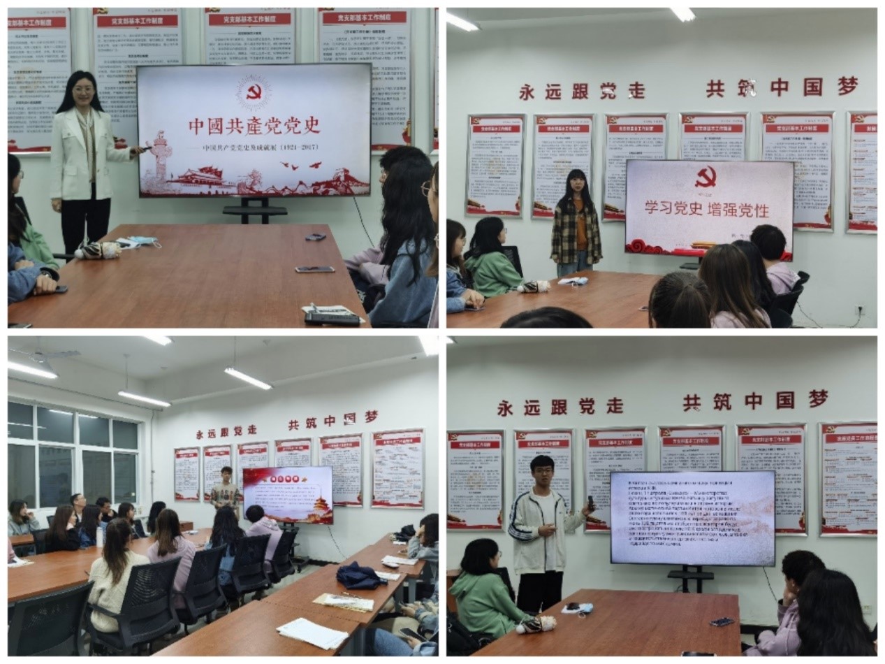 随后,各党小组开展“微党课”党史学习教育比赛。王铂雯同学结合学科特色,开展双语(中,俄)演讲,以“我要讲党史”为主题,梳理从中国共产党成立至今,我党的发展脉络,充分发挥了俄语员工党支部的专业特色。马浚然同学以“学党史强信念跟党走”为主题,从学习党史发展脉络、强信念、跟党走和学习红色精神四个方面展开演讲,并且向同学们推荐三部党史有关的电影。沈九薇同学以“学习党史,增强党性”为主题,详细阐述了从中国共产党的诞生到长征胜利结束这段时期我党的发展历程,主要介绍了红色革命精神,教会我们铭记光辉历史,传承红色基因。