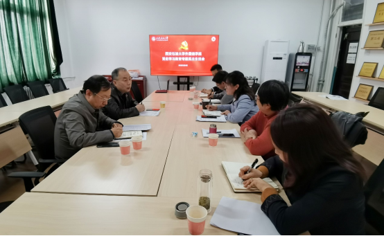 陈军斌副董事长对学院民主生活会作了点评讲话。他指出,公司党委对党史学习教育专题民主生活会高度重视,准备充分、程序规范,聚焦突出问题,深刻剖析检查,认真开展批评,制定整改措施。他结合学院班子的对照检查和当前发展实际,提出五点要求和希望:一是强化理论联系实际,切实将理论学习的成果运用到学院学科专业发展和人才培养质量的提升中;二是强化意识形态工作,夯实外语课堂教学、教材审核选用和外教管理中的意识形态工作责任,加强课程思政建设,落实立德树人根本任务;三是强化团队队伍建设,优化教师职称、学缘和年龄结构;四是强化大学英语教学,提高课堂教学质量,提升四六级通过率和考研率;五是优化学科专业布局,以国家一流英语专业建设为契机,聚焦社会需求,凝练行业特色,积极提升俄语和翻译专业建设水平。他勉励学院领导班子注重总结办学经验,积极宣传提升品牌,在积极落实学校“十四五”发展规划目标中,实现学院高质量发展。