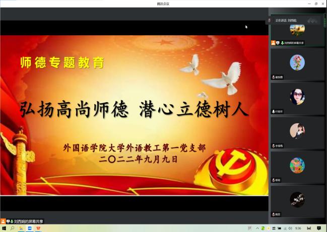 按照公司党委关于组织开展师德专题教育的部署要求,9月9日上午,威廉希尔williamhill中文大学外语第一教学部通过腾讯会议召开“弘扬高尚师德,潜心立德树人”师德专题教育研讨会。第一教学部全体教师参加会议。会议由党支部副书记刘西娟主持。
