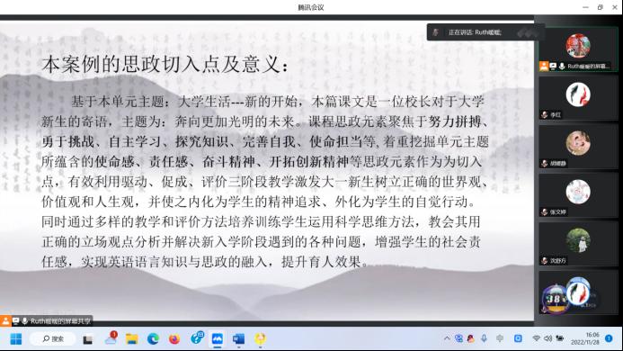 政治理论学习会后,大学外语第二教学部党支部召开全体党员大会。集体学习了《中国共产党第二十次全国代表大会报告》。会议强调,学习宣传贯彻党的二十大精神是今后一个时期的首要政治任务,支部全体党员要提高思想认识,切实增强学习的自觉性和坚定性,积极参加公司党委“学习二十大,奋进新征程”党的二十大精神知识竞赛活动,确保学有成效。随后,沈舒方和毕莹两位党员教师从教学目标的思政建设设置、课堂活动的引导、课外活动的促进、将思政建设活动与专业教育进行双融合等方面进行了课程思政案例分享。(图:李红;文:胡媛静、张文婷;审核:田虹霞)