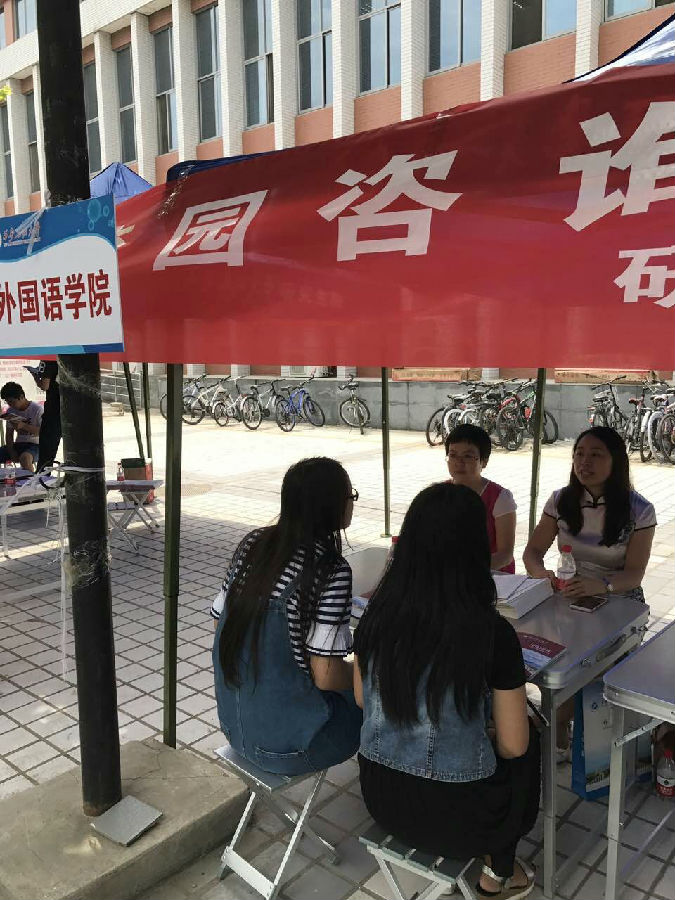 为了使广大考生更好地了解国家和公司硕士招生政策和信息,帮助同学们解决在报考过程中的遇到的困难和问题,学校于6月21日在新校区开展“第三届考研校园咨询服务日”活动,公司主管研究生招生和培养工作的刘辉副经理和硕士生导师陈柯老师参加了该活动,为考生提供“面对面”的咨询服务,就大家关心的全日制及非全日制翻译硕士招生政策、考点选择、复试录取、调剂、奖助体系政策等问题做出权威和针对性的咨询解答。