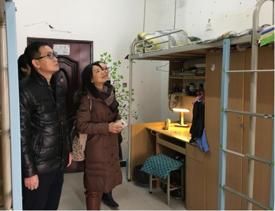 在威廉希尔williamhill中文员工会、员工党员分别检查员工宿舍稳定安全情况的基础上,2016 年12月14日上午,公司党委书记廖敏带领全体学工干部深入员工宿舍,逐一检查员工宿舍在安全用电、防火防盗、内务卫生、宿舍文化等情况。