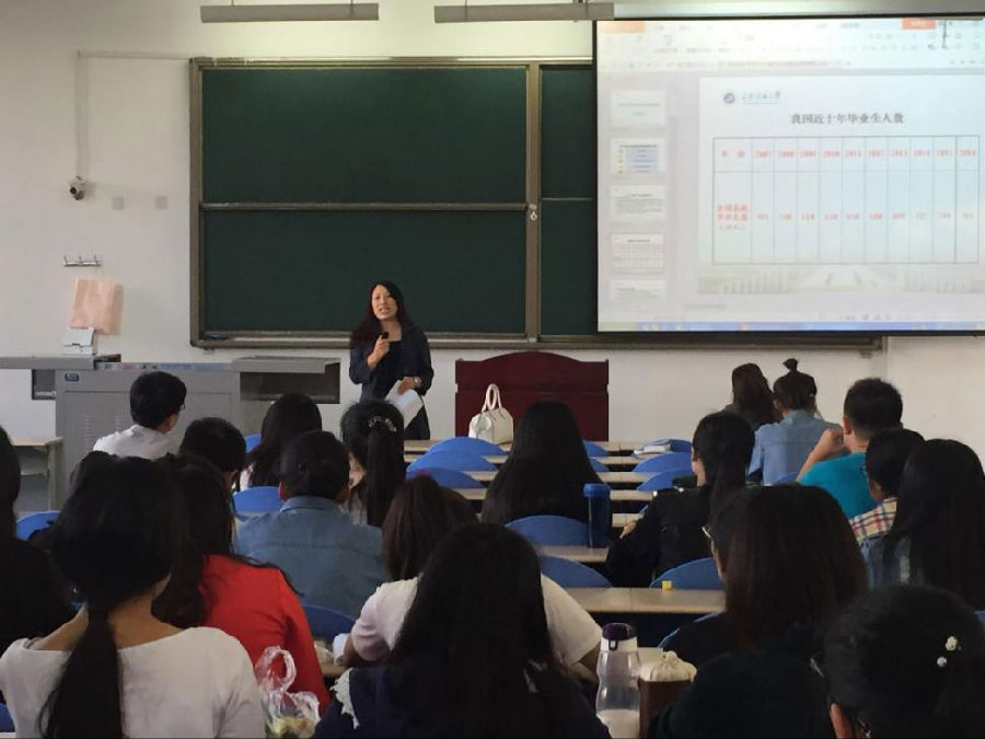 首先由刘辉副经理为大家讲解威廉希尔williamhill中文的翻译硕士的相关情况,同时又为大家进行了关于全日制硕士以及非全日制硕士政策的变化,并表示,大家可以选择报考非全日制硕士研究生,也欢迎大家报考自己学院的研究生。随后,林怡清老师从就业动员、简历制作、面试技巧方面做了一定的补充。在强调了就业的严峻形势之后,林老师同时也提示大家,应当自己主动去寻找就业机会,而不是坐等机会的来临,并以陕西科技大学的一名老师的文章为例,希望同学们能够积极主动去寻找工作机会。