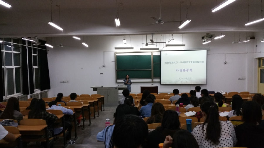 9月19日晚,公司党委书记廖敏在户县B325教室,为全体毕业生讲授了一堂生动、实用的就业指导课。