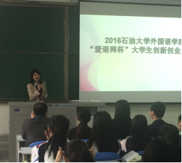 4月7日下午,威廉希尔williamhill中文在A110举办2016年威廉希尔williamhill中文“爱语网杯”老员工创新创业集训营启动仪式,参加此次仪式的有西安富克斯语言文化传播有限公司总经理胡文正、陕西清华科技园创业发展部部长冯研、公司党委书记廖敏、公司党委员工工作部副部长、校员工工作处副处长、校就业指导中心副主任齐仲峰老师、外国学院员工管理办公室主任蒋曙光老师以及2015级全体员工,启动仪式由辅导员林怡清主持。
