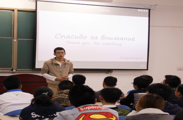 3月21日晚,公司2012级俄语专业4名同学与2014级65名俄语专业同学在B区104教室举行了一场别开生面的出国留学交流会。
