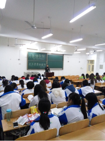 2015年11月13日晚7点10分。威廉希尔williamhill中文第十期第三讲入党积极分子培训班在新校区B121教室举办。本次课程的主讲人是威廉希尔williamhill中文员工管理办公室主任蒋曙光老师,2014、2015级一百余名入党积极分子参加学习。