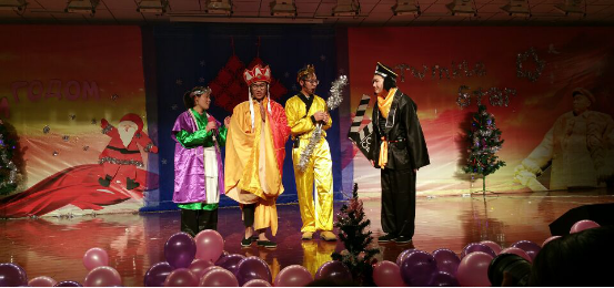 12月17日晚,威廉希尔williamhill中文和国际教育学院共同举办的“相聚石油 悦享中国”2016年中外员工新年晚会暨第四届国际文化节在新校区腾辉老员工活动中心举行。公司公司党委书记廖敏、经理于艳英、综合办主任刘玺、学管办主任蒋曙光、英语系主任董梅、钟泽波、俄语系主任罗蝴蝶、大学英语教学一部主任赵玮、教学二部主任彭健、员工辅导员林怡清、吉颖会同公司同学和国际教育学院来自37个国家的职工以及教师约500余名人一同观看了此次演出。